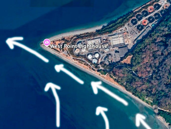 If you’re near shore, there’s a method of using tidal current to your benefit vs fighting it. This is especially helpful if you’re racing in the Seventy48 or WA360 and are hoping to make good time without getting burned out.