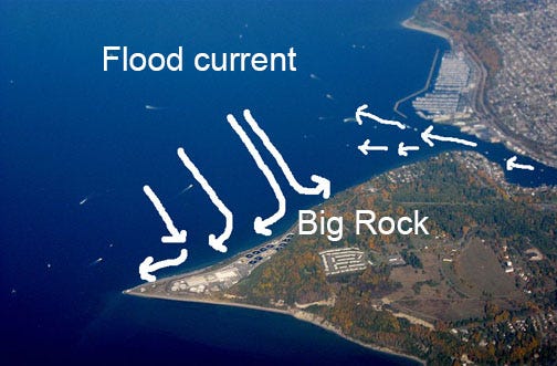 Other weird spots include Colvos Passage west of Vashon that generally only runs north. Burrows Island is usually flooding when you’d think it should be ebbing. I’ve seen Port Townsend' ‘PT’ Canal flooding hours before it’s predicted time.